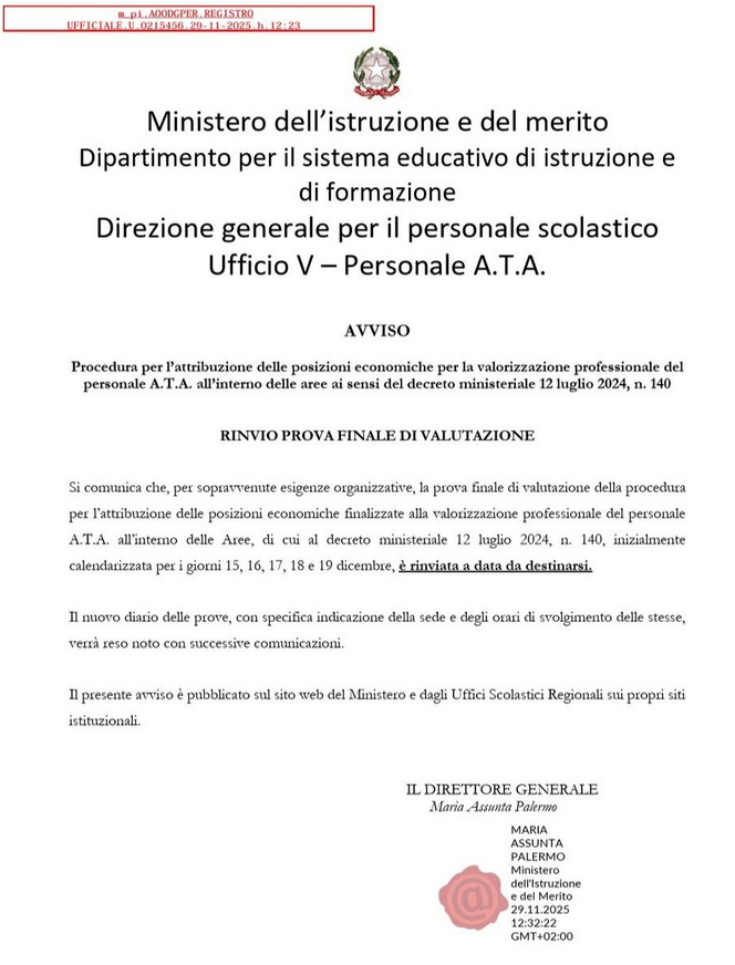 Rinvio prova finale posizioni economiche ATA Ministero dell’istruzione e del Merito. Posizioni economiche ATA. Rinvio a data da destinarsi delle prove finali dopo le proteste dello Snals e delle altre organizzazioni sindacali relativamente alle sedi assegnate agli aspiranti.